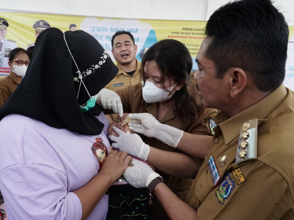 Pj Wali Kota Tebingtinggi Muhammad Dimiyathi berikan tetes ilImunisasi Polio.