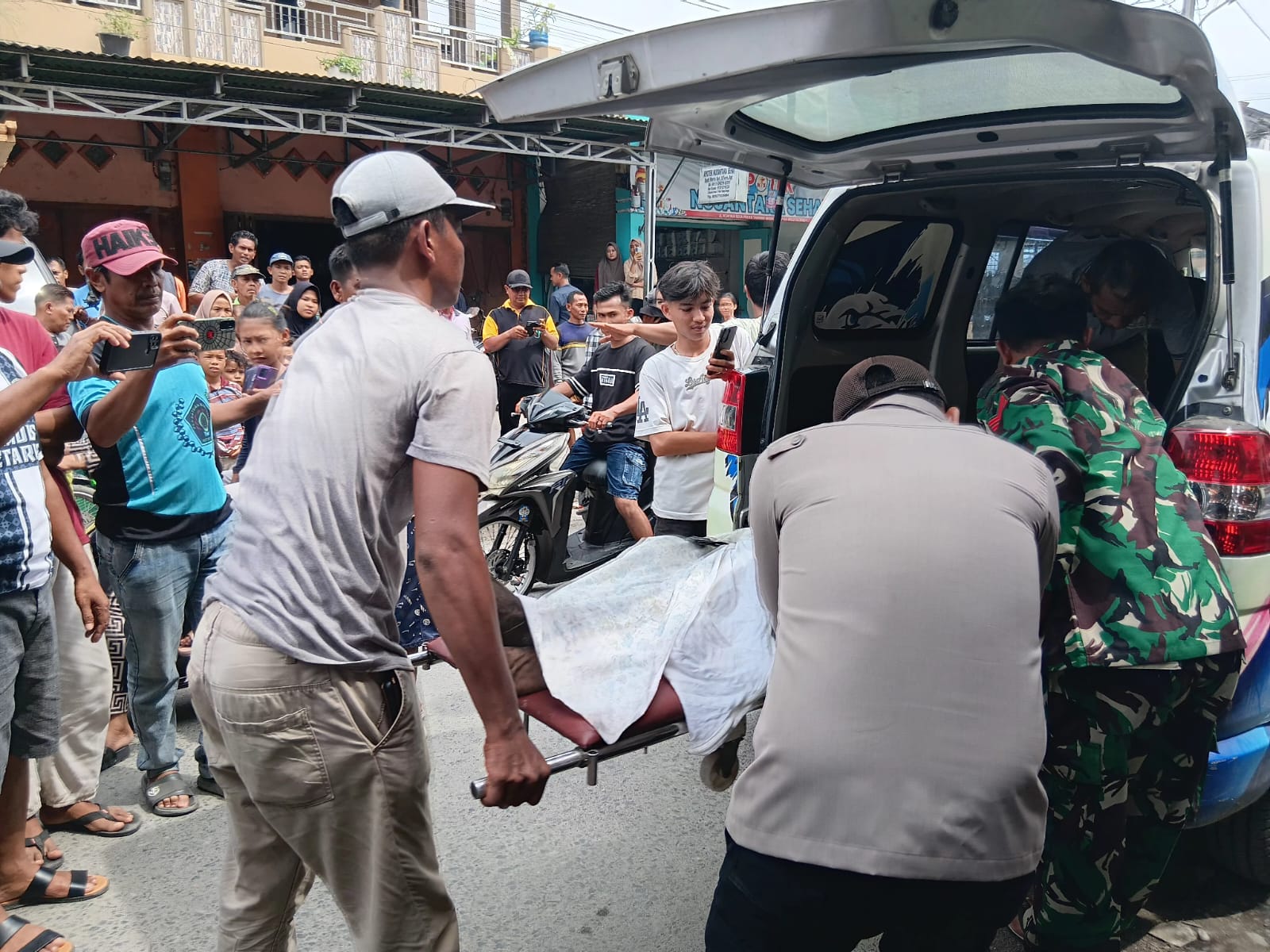 TNI-Polri mengevakuasi pria diduga ODGJ yang meninggal dunia di emperan toko warga di Tanjung Beringin.(ist).