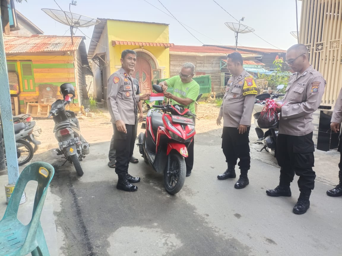 Tumbuhkan Rasa Nasionalisme, Polsek TBS Bagikan Bendera Merah Putih jelang Hut ke 80 RI