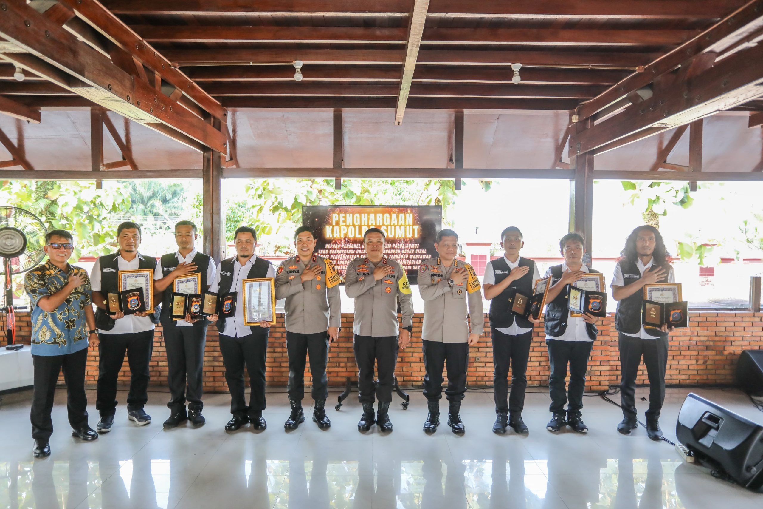 “Penghargaan ini atas prestasi saudara-saudara karena berhasil mengungkap kasus kejahatan yang menjadi perhatian publik” ujar Kapoldasu.