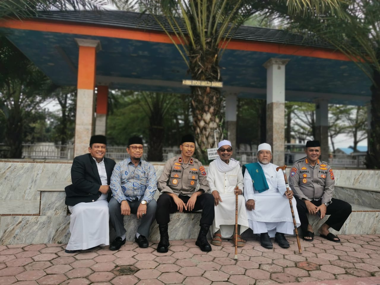 Kedatangan Brigjen Pol Jawari beserta rombongan disambut Syekh KH Ali Akbar Marbu bersama sejumlah santri Ponpen Al-Kautsar.