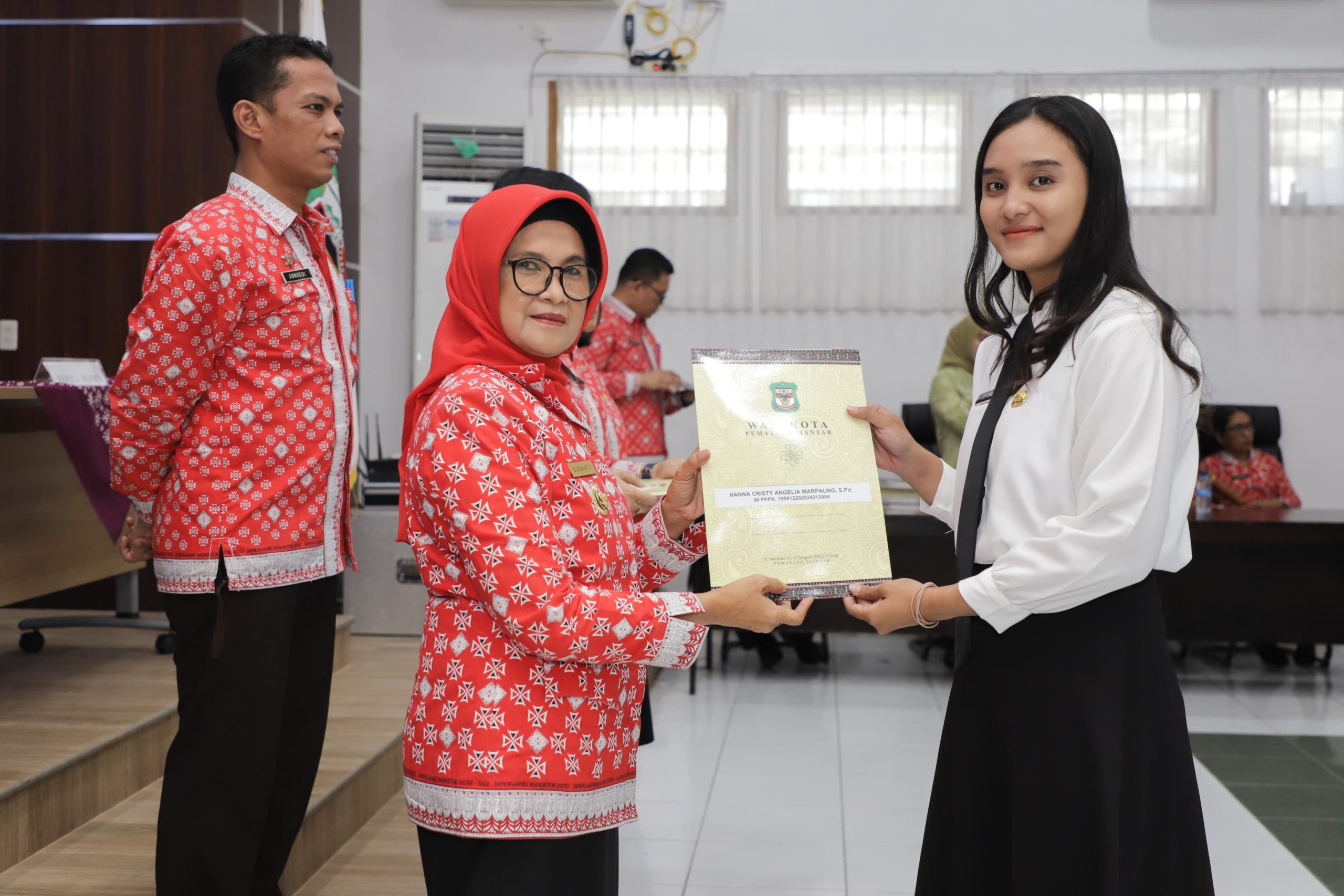 P.SIANTAR, INVOCAVIT.COM – Wali Kota Pematang Siuantar dr Susanti Dewayani, SpA menyerahkan SK kepada 183 Pegawai Pemerintah dengan Perjanjian Kerja (PPPK)  guru Formasi Tahun 2023, di Gedung Serbaguna Pemko Pematangsiantar, Kamis (29/02/2024) pagi.