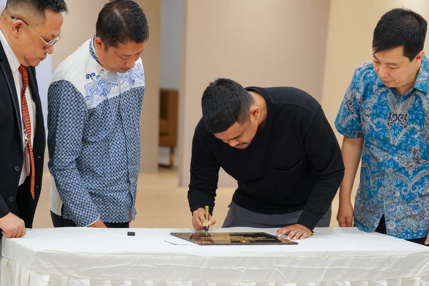 Wali Kota Medan Bobby Nasution menandatangani prasasti peresmian traumatology RS Regina Marris Medan.(ist)