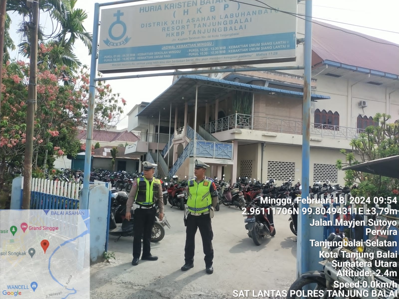 TJG BALAI, INVOCAVIT.COM-Dalam rangka mewujudkan kenyamanan kepada warga yang melaksanakan ibadah Minggu di gereja Setiap hari minggu, Polres tanjung balai menghadirkan personelnya melaksanakan pengamanan dan monitoring. Minggu 18 Februari 2024 pukul 08.00 Wib.